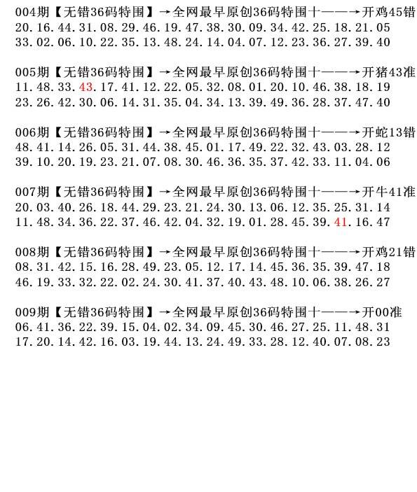 005期 特码尾数 2.3.6.7.8.9 开 43 中